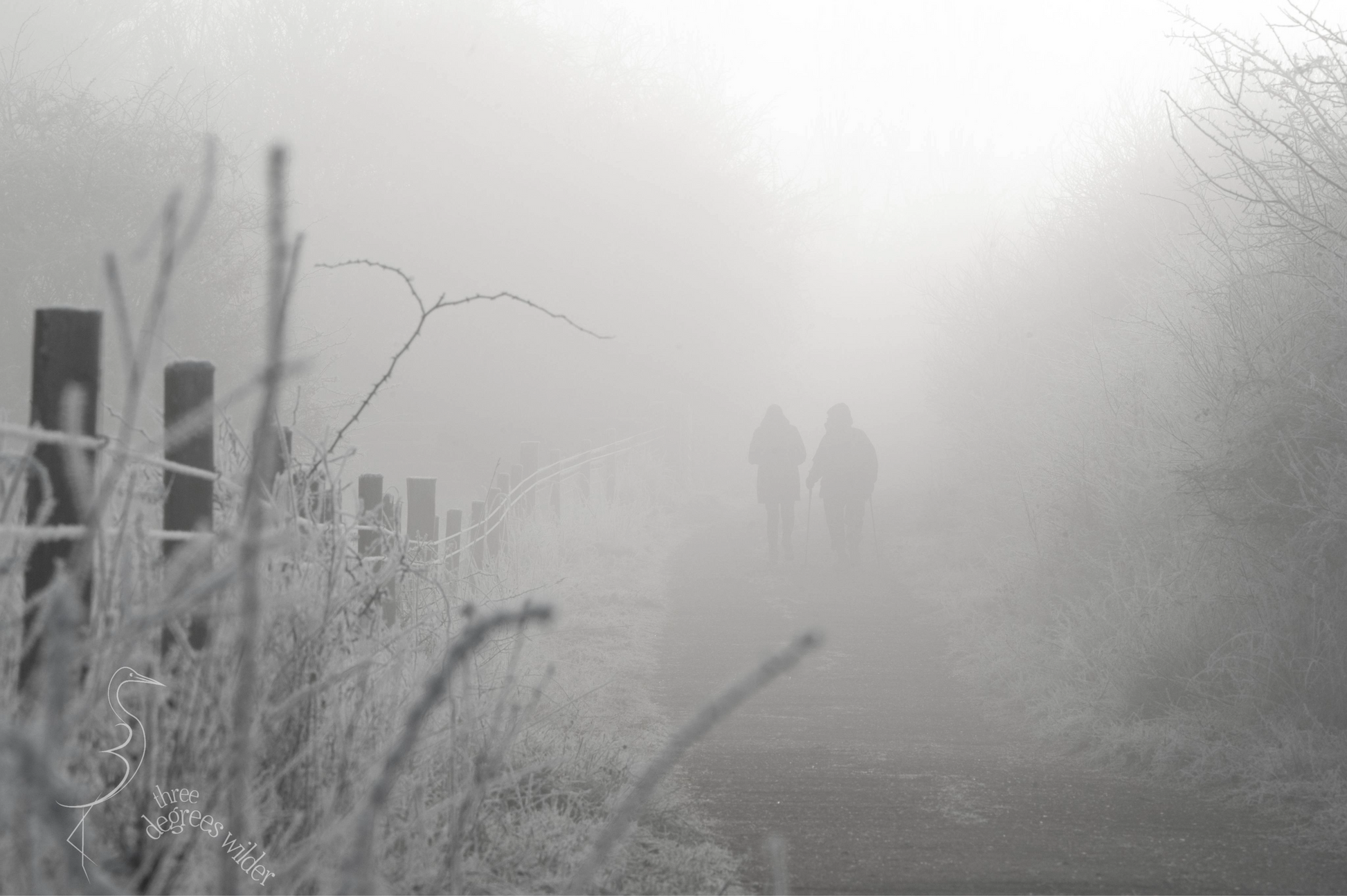As the UK was gripped by a sub-zero cold snap; wintery scenes abound. Out of the freezing fog edged a brave pair skirting the path of the ice-thorned hedges.